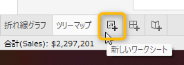 Tableau Publicを起動し、新しいワークシートのアイコンをクリックして、新しいシートを作成しましょう。